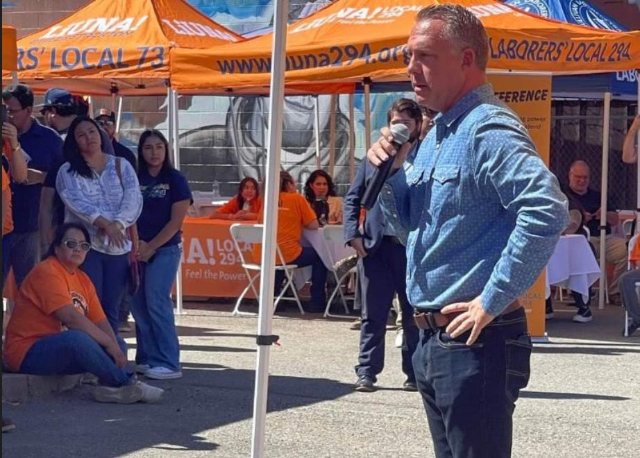 “As I was driving here today, I saw a sign,” Josh Lepper, Business Manager, Laborers Union Local 1130, tells me at the beginning of a mid-September Saturday afternoon mobilization in support of Gray. “It said, ‘John Duarte for Congress. Farmer.’ And I thought, what the hell is that supposed to mean?”